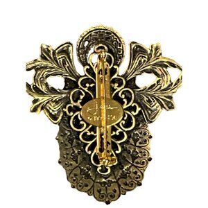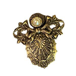 Vintage Jane Angel Pin Signed 1997 Gold Tone Faux Pearl Gem2 1/4" x 2 1/4"