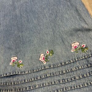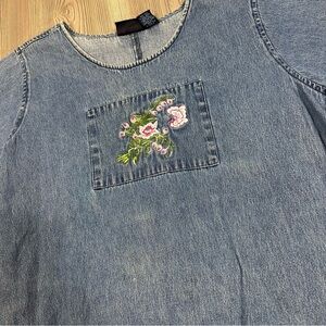 Ships fast from North Carolina! This vintage Jane Ashley denim dress with embroidered floral details gives off true 90s cottagecore vibes. Effortless and comfy for spring days, summer vacations, and layering in fall.