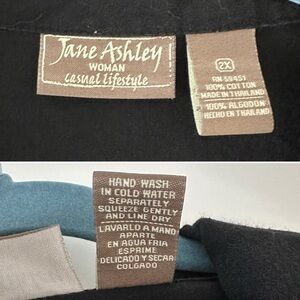 Vintage Jane Ashley Black Painted Beaded Button Up Shirt Women’s Plus Size 2X