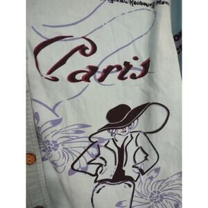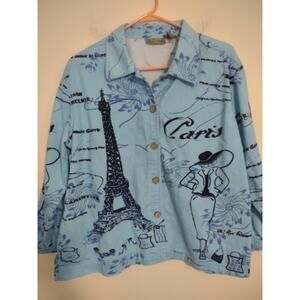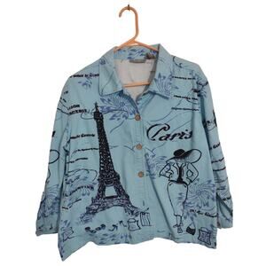 Vintage Jane Ashley Woman Jacket Size 1X Blue Paris Print Lightweight Artsy