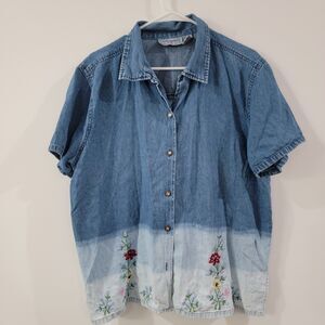 Vintage Jane Ashley Womens Button Up Size 1X Embroidered Floral Chambray