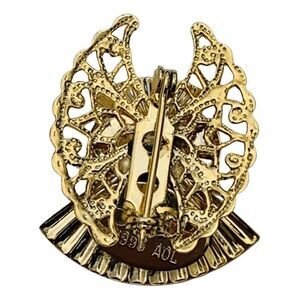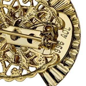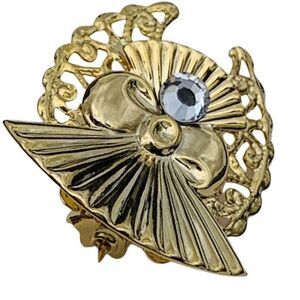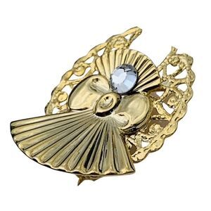 Vintage Jane Clear Faceted Glass Fan Paisley Shiny Yellow Gold Tone Brooch Pin