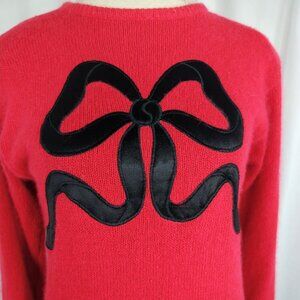 Vintage Jane Neal for Tannersport red knit sweater with black satin bow