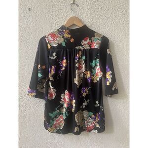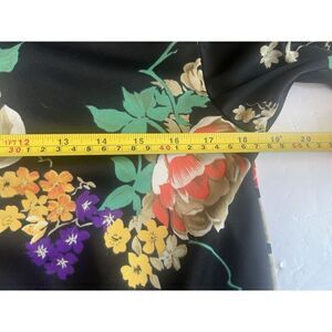 Vintage Jane Holly Blouse Sz 10 Black Multi-color Flowers V-Neck USA Union Made