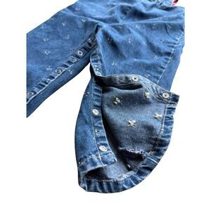 These adorable overalls feature adjustable straps with button closures and snaps along the inseam for easy changing. The floral embroidery adds a decorative touch to the denim, making them a stylish and practical choice for little ones.