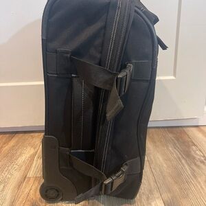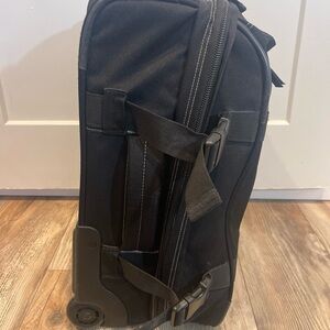 Vintage Jansport Rolling Carry On Luggage 2 Wheel Black Suitcase 19 Inch Buckles, Super hard to find! EUC for being vintage, all zippers & buckles work. Measures 19”x13”x10”