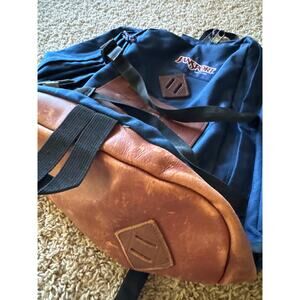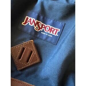 Vintage Jansport USA Made Extra Large Multi Pocket Navy Blue Leather Backpack