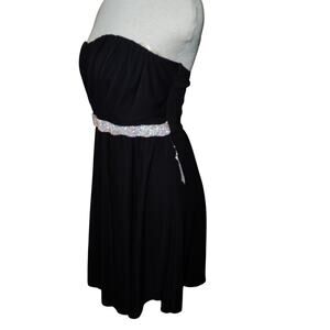 Vintage Janté Black Strapless Dress Rhinestone Waistband Made in USA Size L