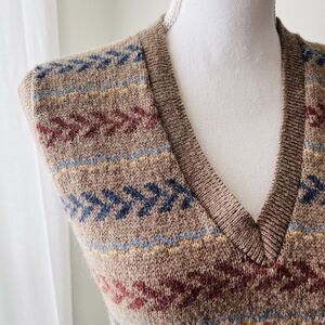 Vintage Jantzen Brown Striped Wool Blend Stretchy Sweater Vest Made in USA Large