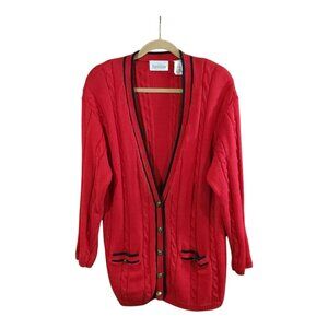 Vintage Jantzen Cableknit Grandpa Cardigan Sweater in Red Women's Large