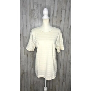 Vintage Jantzen Classics Women's Ivory Textured Short Sleeve Top Size Large