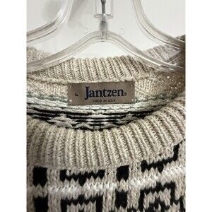 Vintage Jantzen Ivory/Black fair isle Crewneck Sweater Large Excellent!