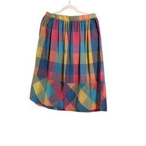 Vintage Jantzen Madras Plaid Cotton Button Skirt Size 16