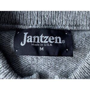 Vintage Jantzen Men's Sz M Gray and Blue Wool Sweater w/ Leather Buttons USA