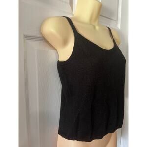 Very good condition vintage Jantzen petite size medium Black sparkle knit camisole style sweater with adjustable straps in a rayon/metallic blend sweater knit