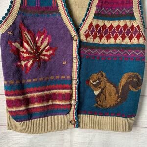 Vintage Jantzen Petites Fall Knit Sweater Vest Embroidered Squirrel Leaf Size L