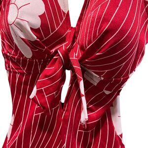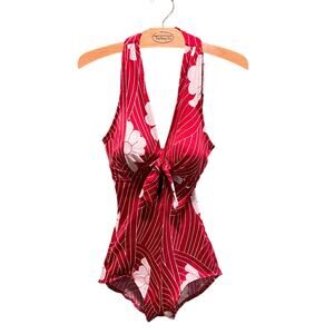 Vintage Jantzen Red Floral Halter One Piece Swimsuit Size 10