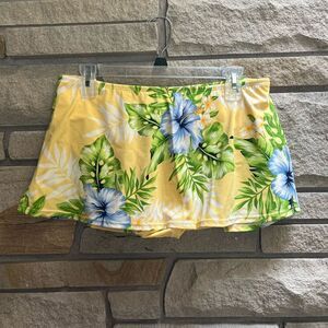 Vintage Jantzen Skirted Swimsuit Bottom Butter Yellow Tropical Floral 14