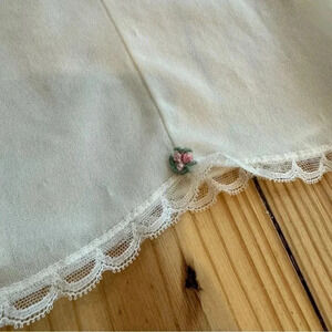 Vintage bullet bra with slip dress by Jantzen; company created in Portland Oregon in 1916. Cream color with lace trim, adjustable straps and adorable mini pink floral bouquets. Bullet bra is lightly padded. Extremely feminine. Double seams, very well made. Dress is presumed to be from the 1950s, if you have more information on it please pass it along. In great condition.