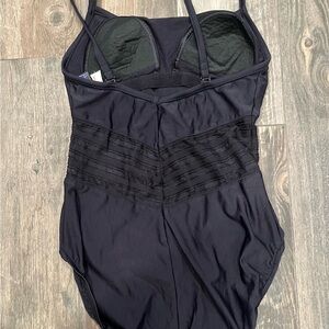 Lightly padded built in bra, straps can be detached in the back, higher leg in the front , mesh panel under the bust give the suit style and