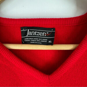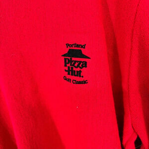 Vintage Jantzen red v neck sweater with a Portland Gold Classic and Pizza Hut logo. Size XL