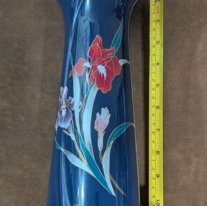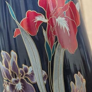 Vintage Japan 10.5" Navy Blue Vase Floral Iris Gold Trim by Fine China
