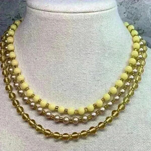 Vintage Japan 3 Strand Necklace - Yellows and Cream