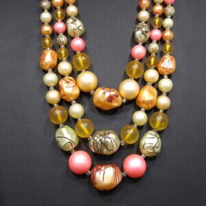 Vintage Japan Art Bead Necklace, Three Strands, 1950s, 17"