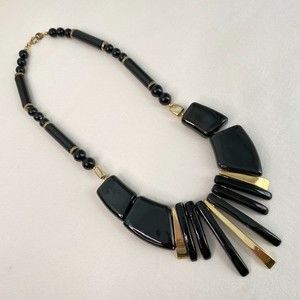 Vintage Japan Black Gold Chunky Statement Necklace
