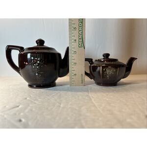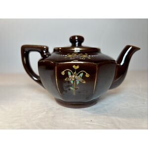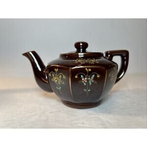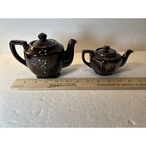 Vintage Japan Brown Ceramic Teapots with Lids – Hand Painted Floral Gold Accents