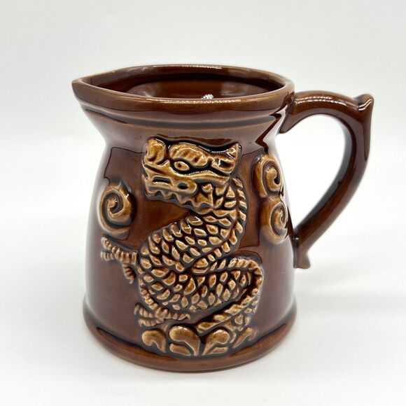 Vintage Japan Brown Drip Glaze Dragon Measuring 1 & 1/2 Cups w/Handle Set of 2
