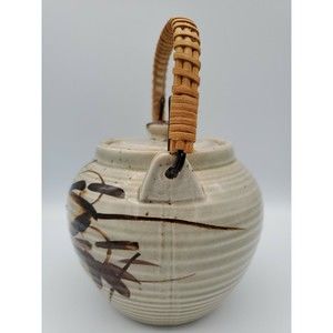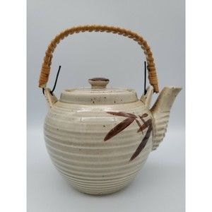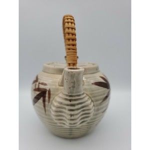 Vintage Asian Ceramic Stoneware Teapot with Wicker Bamboo Handle Japan. This teapot is in exceptional condition! It has no chips, cracks, or repairs. Measurements are inside photos. Condition is "Used". Item is sold as is.