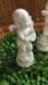 Set of 3 vintage Japan detailed bisque porcelain cherubim with musical instruments. The middle one with trumpet, has a pin head size black dot on his hand