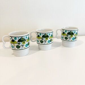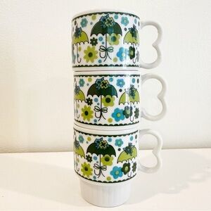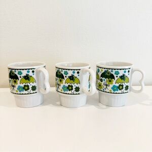 Vintage Japan Floral Feminine Umbrella MCM Mod Stackable Mugs set of 3