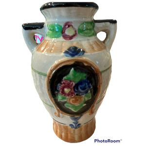 Vintage Japan Kyoto majolica flower vases, 4 3/4" high, 2 1/4" base, radius at middle of vase 10 3/4.