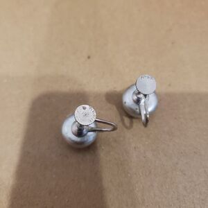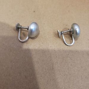 Vintage Japan Minimalist Round Silver Screw Back Earrings. stamped with the word Japan on the back