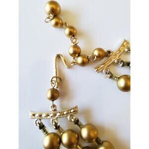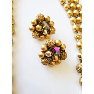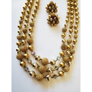 Vintage Japan Multi Tier Gold Tone Necklace and Earring Set