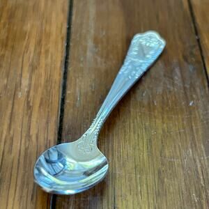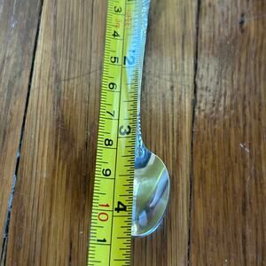Charming vintage nickel silver demitasse spoon made in Japan, measuring 4.25 inches long. Perfect for serving espresso, tea, or desserts, this elegant piece adds a timeless touch to any table setting or vintage flatware collection.