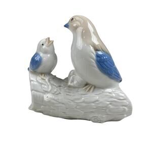 Vintage Japan Porcelain Bluebird Figurine – Mother and Baby Bird on Branch
