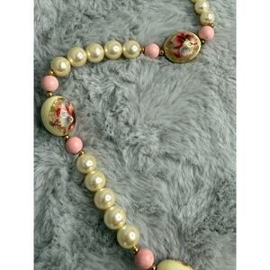 Vintage Japan Porcelain Floral Bead Faux Pearl Necklace 27" Hand Painted