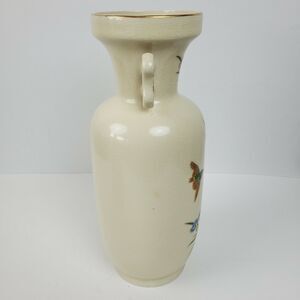 Vintage Japan Porcelain Iris Hummingbird Vase ART w/ Handles Gold Trim 12 Inch