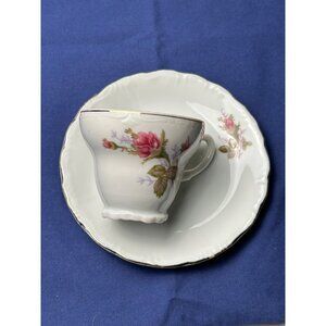 Vintage Japan Porcelain Tea Cup & Saucer Pink Rose Floral Gold Trim Shabby Chic