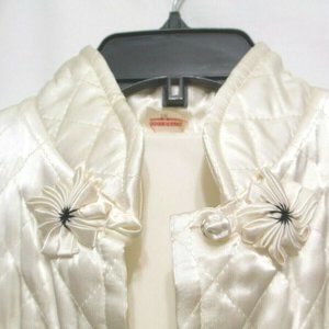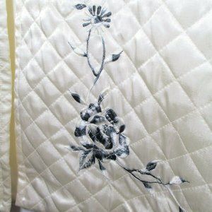 Vintage Japan Quilted Kimono Satin Robe Ivory Embroidered Size M (NEW)