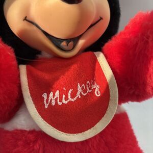 Vintage Japan Rubber Face Mickey Mouse Plush Toy Walt Disney Productions Bib