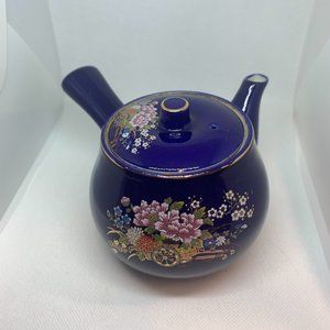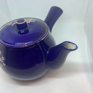 Vintage Japan Saki Cobalt Blue Porcelain Side Handle Tea Pot