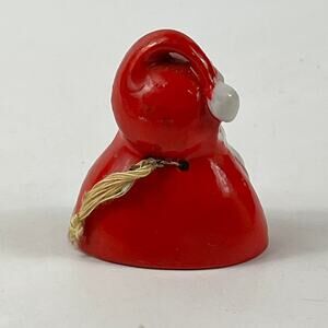Vintage Japan Santa Bell Ornament Ceramic Red White “Seasons Greetings” 1.75"