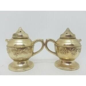 Vintage Japan Teapot Salt & Pepper Shakers Tea Pots Embossed Floral S&P Elegan