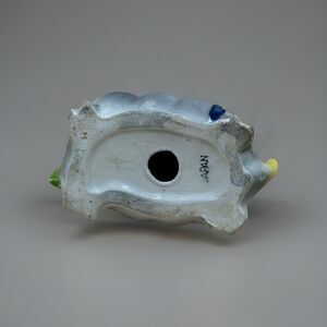 Charming mid-century ceramic turtle figurine, hand painted in bright pastel colors. Features a whimsical design with pink hat, long eyelashes, and books carried on its shell. Marked Japan on the base, dating it to the 1950s60s import era. A perfect addition to a vintage figurine collection or quirky retro decor.