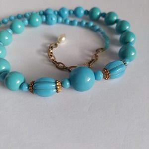 Vintage Two Tone Blue Bead Necklace ~ Single Strand 20" with Extender