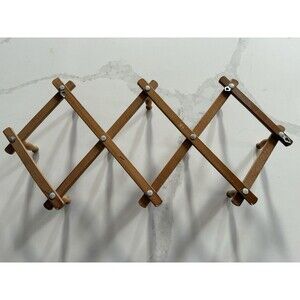 Vintage Japan Wooden Accordion Wall Peg Rack 10 Peg Expandable Coat Hat Mug MCM